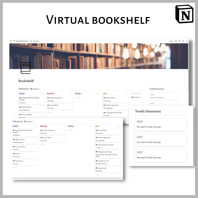 Bookshelf/Reading List Manager | Aesthetic Notion Template